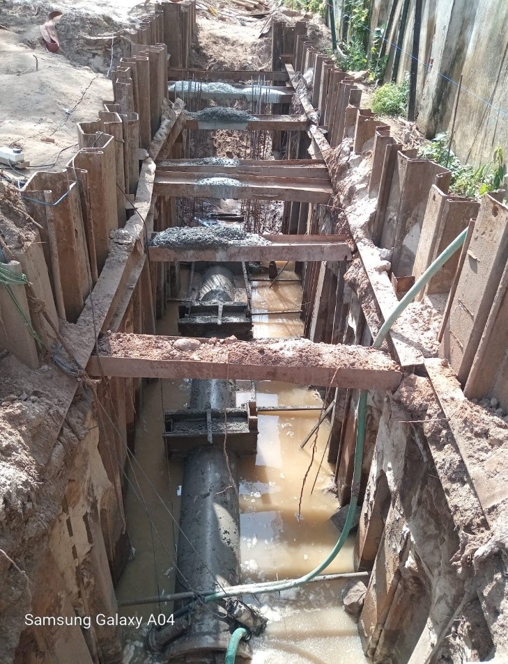 - Work:rectification of the sewer line, excavator-mounted sheet piling excavation, waler fixing, and related civil works